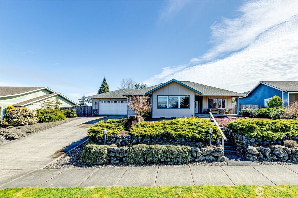 Beautiful Craftsman home built in 2013. This 1886 sf one level home is in the east side Sequim city limits. This 3 bedroom, 2 bath, 2 car garage features an open concept spacious living room, formal dining area and kitchen. Granite counter tops, glass tile back splash, breakfast bar, hickory cabinets in the kitchen and bathrooms and engineered hardwood flooring throughout the open concept area. On suite 3/4 bath off the generously sized primary bedroom with large walk in closet. Sweeping views of the city of Sequim and partial view of the Olympic mountains. Great location! Close to downtown and the Olympic Discovery Trail. Highland Irrigation available along with city water. Automatic Sprinkler system. Both Sunsets and Sunrises here.