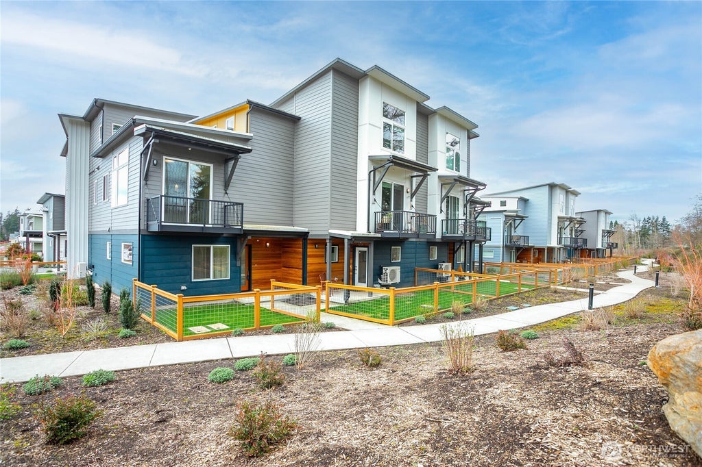 Northwest contemporary townhouse in better than new condition with loads of extras. Highend appliances, LG Washer/dryer, up/down blinds all installed and very lightly used. 2111 spotless sq ft, 4 bdrm, 2.75 bath, oversize 2-car attached garage. Bright, greatroom floor plan and lots of light in this corner unit with 9' ceilings and an amazing kitchen with quartz countertops, eating bar and lots of cabinets. AtroGuard flooring, primary suite with luxury bath. Energy efficient mini-split heat/AC, fireplace and 80 gallon hybrid heat pump water heater. No pet restrictions or rental cap. Appealing modern architectural aesthetic with inviting front porches, balcony decks, sidewalks and alley-load garages. 5 minutes to Costco & I-5 onramp.