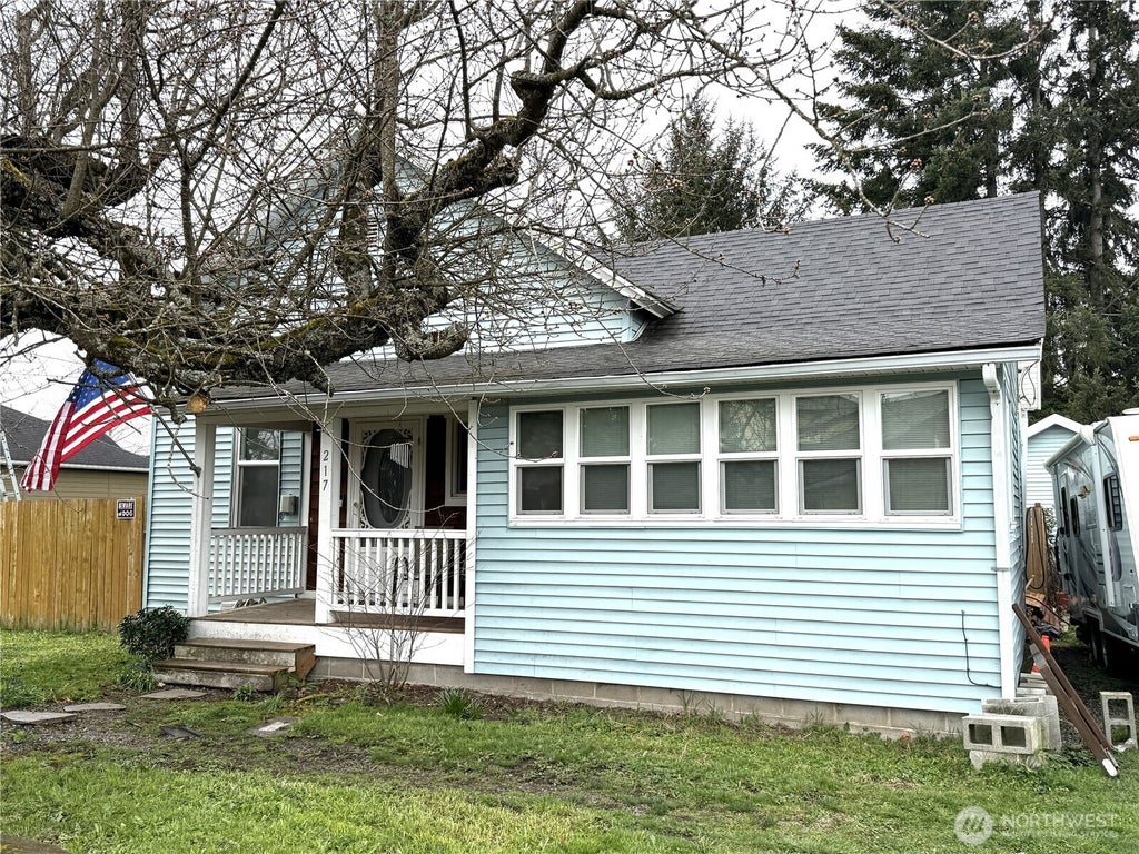 Charming 2BR Craftsman Home with detached garage/shop in downtown Buckley. Location, location, location! Walking distance to schools, shops, restauraunts, post office and walking/biking trails. Lots of character with modern interior paint schemes, light fixtures, high ceilings and even decorative barn doors. Updates include HVAC system, vinyl windows, laminate flooring, and newer appliances. The mini split heat pump provides energy efficient heating and cooling. Good-size detached garage with shop space and plenty of storage. Very private fully-fenced backyard with gate access for your RV/Boat. Ask about 1% interest rate buy down for first year, at no cost to buyer, when using trusted lender.