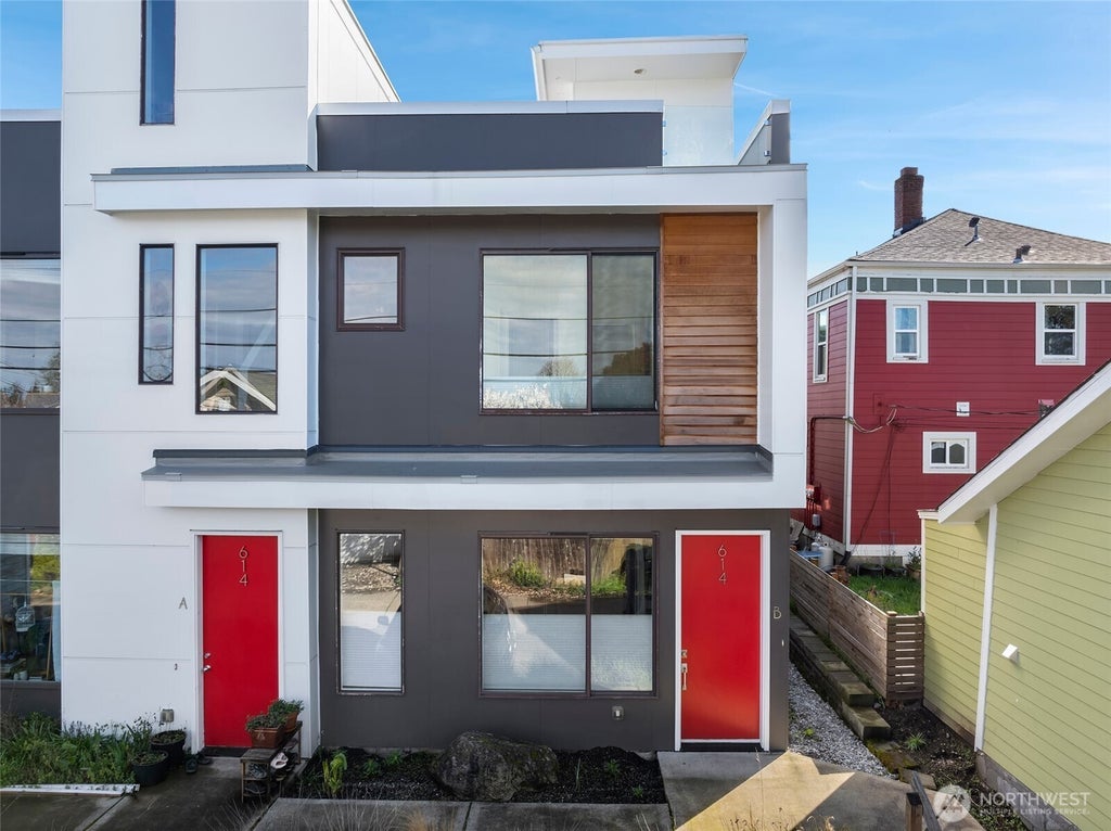 Modern West-facing townhome just blocks from UPS and located in the heart of 6th Avenue restaurants & shopping. Built in 2010, this beautiful tri-level home features clean lines, low maintenance, boasts natural light, and a rooftop deck! Upon entry, you’ll love the real bamboo flooring, radiant heat, s/s appliances including gas stove, & half bathroom. On-demand, tankless water heater for lower utility bills. Dual primary suites, each with full bathrooms & custom closets. Stacked front-loading washer & dryer just outside the bedroom doors. Floating staircase leads to private rooftop retreat with territorial and peek-a-boo mountain views, plus extra storage closet. 1 dedicated parking space right outside your front door & NO HOA!