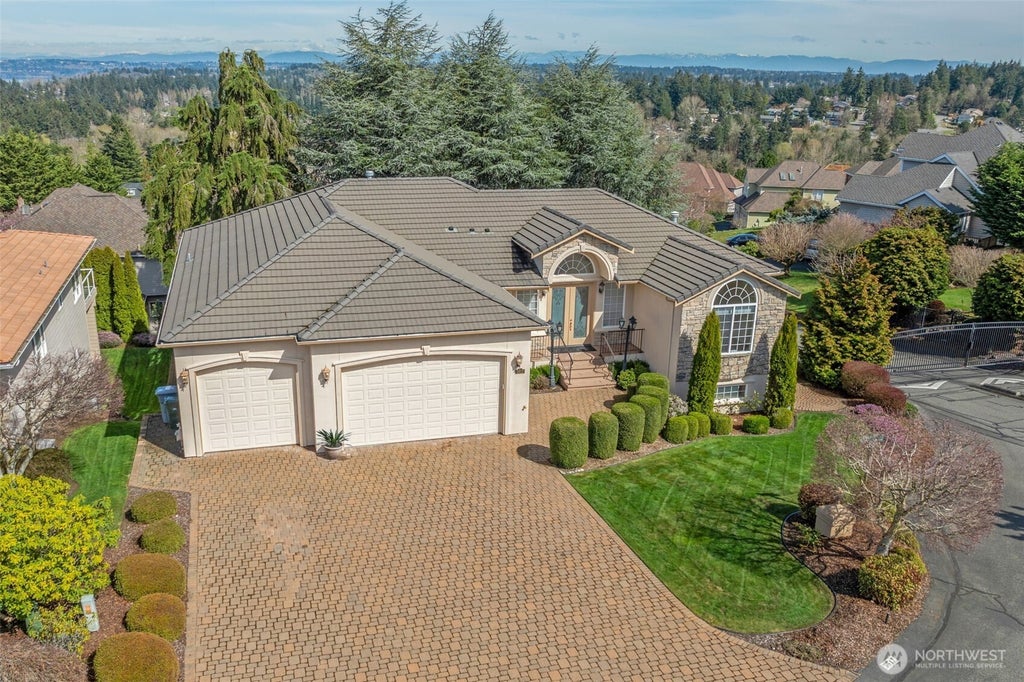 THE HOME HAS SOLD! Welcome to effortless elegance in this spacious home designed for comfortable main-floor living. The primary suite, kitchen, dining, and main living areas are all thoughtfully located on the main level—making everyday living both convenient and refined. Downstairs, a generously sized family room offers the perfect space for entertaining, relaxing, or multi-generational living. Three additional bedrooms and two full bathrooms provide flexibility for guests, home offices, or extended living. Large, light-filled windows throughout the home capture partial views of Puget Sound, the Olympic Mountains. Luxurious finishes, three fireplaces, and timeless design touches, set within a small, gated community.