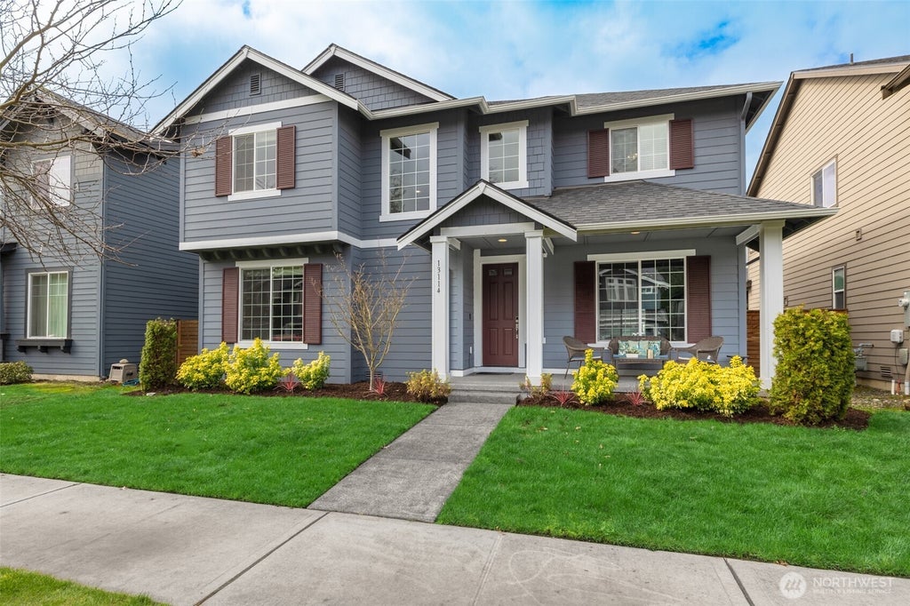 Welcome to this 4 bed, 2.5 bath home in the Berkeley Park neighborhood of Tehaleh. The open-concept kitchen with eat-in space and plenty of cabinet storage blends perfectly into the dining room, offering built-in bench seating with storage, and a spacious living room with sleek floor to ceiling fireplace. Built in speakers flow from the living room to the outdoor patio, perfect for entertaining! The main floor also features a home gym with modern glass doors and a bright home office. Upstairs, you’ll find three generous sized bedrooms plus a luxurious primary suite. Well over $20K in upgrades. Walking distance to many of Tehaleh's parks, 40+ miles of trails, and retail amenities. Located in the Sumner-Bonney Lake SD.