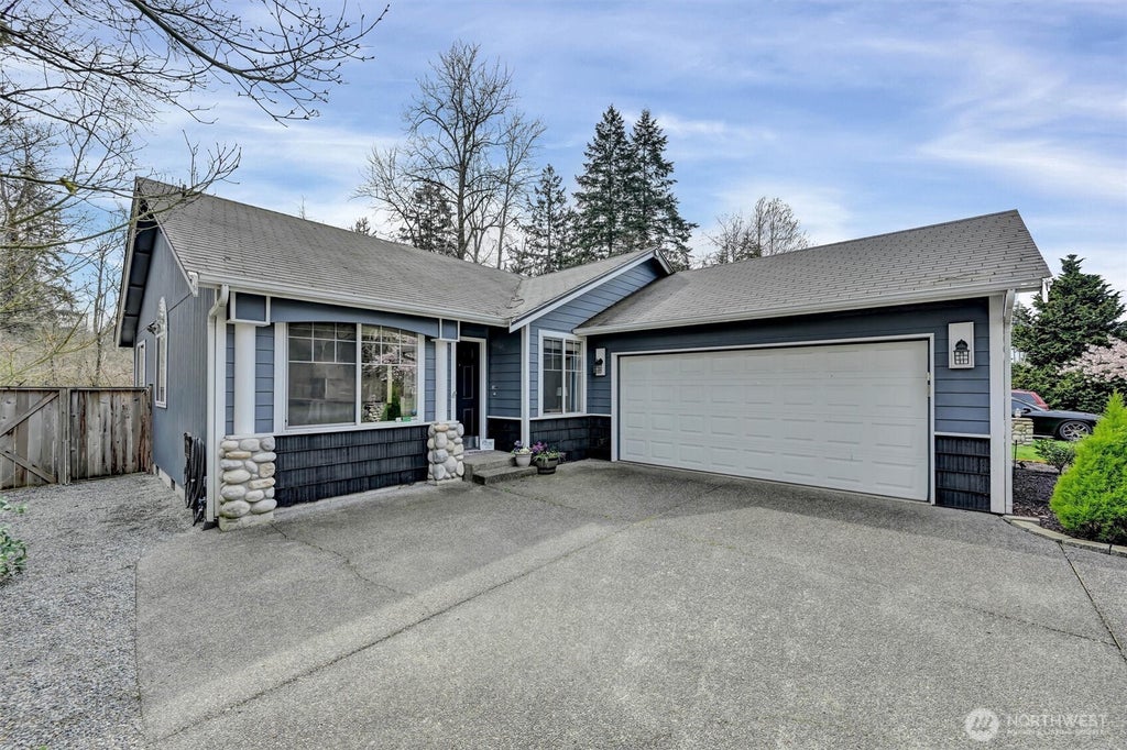 Charming Rambler in Sunrise Puyallup–Private & Peaceful! This adorable rambler is nestled against serene wooded landscape on two sides, offering unmatched peace, quiet, and privacy. The open-concept design boasts soaring vaulted ceilings and abundant natural light, creating a warm and inviting atmosphere. Dont miss the warm wood custom bespoke mantle around your gas fireplace. The stunning kitchen, entry and living areas feature beautiful LVP. Stay comfortable year-round with A/C and gas forced air. Step outside to the spacious partially covered 20x20 patio, perfect for BBQs and entertaining in the beautifully landscaped backyard. Area parks, close to schools and shopping. Don’t miss your chance to own this gem.