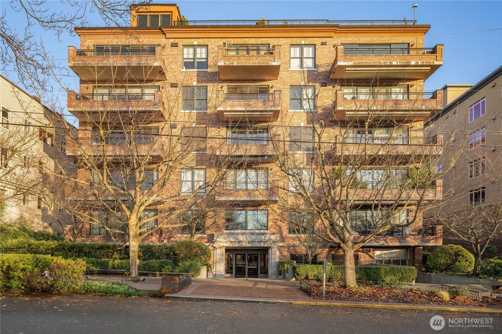 Enjoy the lifestyle in this coveted building on the top of Queen Anne, within blocks of everything! Boutique shopping, cafes, fine dining, parks, theaters- all of the amenities of this wonderful neighborhood. The Renaissance is a classic brick style designed to blend with the traditional buildings of the neighborhood, but built of concrete and steel with all of the modern technology and amenities. This fourth floor 2 bedroom home is spacious and light, with a balcony that overlooks the treetops of St Anne's grounds. The second bedroom was recently redesigned, with double opaque glass doors, which can be opened to incorporate this into the living space, or closed for privacy as a bedroom. Other updates: new stone bar counter, updated bath.