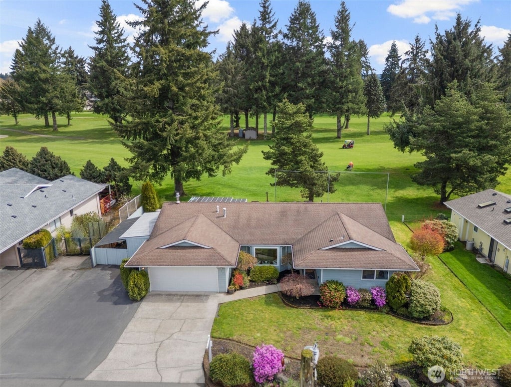 This fully remodeled home boasts over $90K in upgrades & sits on a prime 8,665 sq ft lot with stunning views of the 12th green at Capital City Golf Course! W/1,848 sq.ft of stylish living, dining rooms w/luxury bamboo flooring, new carpet, fresh paint, designer lighting, & a gorgeous kitchen with quartz waterfall countertops, new cabinets, & a statement island. Enjoy the skylight, A/C, 2nd family room w/ a gas fireplace, plus French doors leading to a sunroom with a large deck, new carpet, & outdoor grilling/entertainment area, RV/boat parking, DBL garage, tons of space for parking & playing, extra storage shed, & a beautiful variety of gem trees and gardening space. walk to parks & coffee , close to schools, shopping, easy access to JBLM!