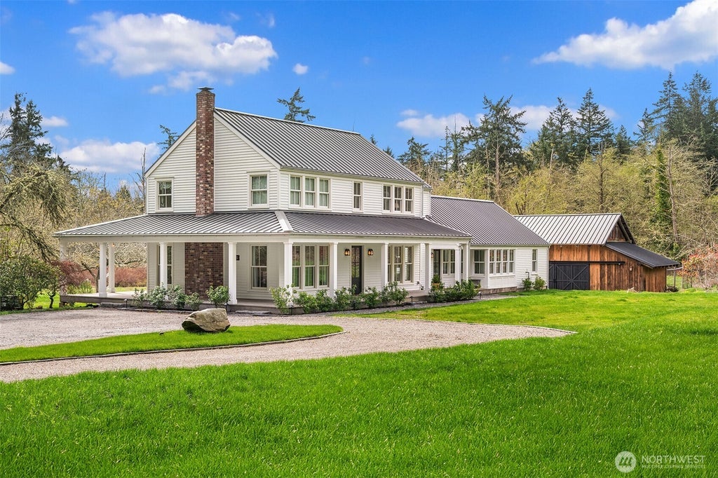 Nestled in the heart of Burton, this exceptional 4-bedroom Vashon Island estate is a true masterpiece of design and craftsmanship. Set on 4.6 acres, the home combines luxury with tranquility. Sun-drenched interiors feature Woodpecker white oak floors, designer wallpaper, and Baldwin brass hardware. A chef’s kitchen with a La Cornue range serves as the heart of the home, while spa-like baths showcase Carrera marble and a cast-iron soaking tub. Outside, nature unfolds in perfect harmony—fruit trees dot the landscape, a charming barn offers endless possibilities, and a fire pit beckons for evening gatherings. Unwind on the wraparound deck and embrace the island’s serene pace. More than a home, this is a sanctuary where luxury meets nature.