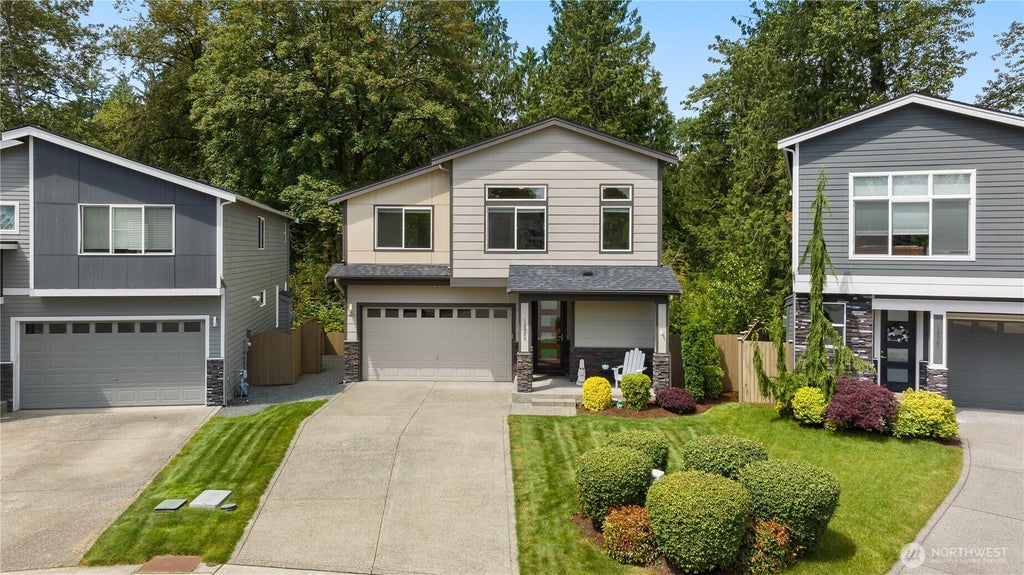 Ideal Cul-de-Sac Location! This masterpiece is tucked next to a lush greenbelt in a great neighborhood. Pristine condition! Better than new w/ prem. upgrades. Enter to open main flr. ½ bath downstairs. Gas fireplace in living rm. Designer kitchen w/ huge quartz island! Gas cooktop. Comp deck out back overlooks paradise w/ concrete patio. Fenced yard. Luxurious primary suite w/ 5 pc bath, soaking tub & walk in closet. Vaulted loft, 2nd bath & 2 more bedrooms upstairs. Recent upgrades incl. central A/C, custom blinds, & new carpets & pad. Garage w/ shelving. Tankless wtr. Private park & walking trails, community events. Conveniently between Monroe & Snohomish. Easy access to Hwy 522/Hwy 2. Snohomish Schools.