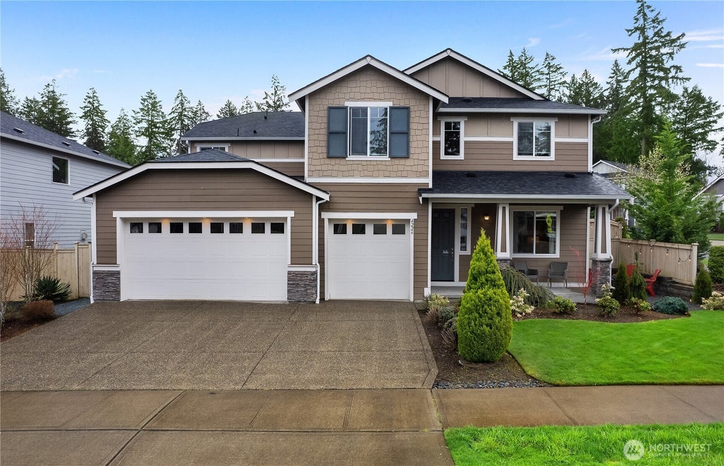 Step into this stunning home with 5 bds, 4 ba, and 3150sf of beautifully designed space. This home exudes charm and style! The expansive great room with grand ceilings creates an open, elegant atmosphere while the formal living room offers the perfect space for entertaining and relaxation. The gourmet kitchen is a chef’s dream featuring a large island, butler’s pantry, and double oven, perfect for preparing meals and hosting guests. The main floor bedroom is conveniently adjacent to a full bathroom and an upstairs bedroom features a private en suite. Situated on a corner lot in the desirable Campus Fairways golf course community, this home also boasts a spacious patio ideal for outdoor gatherings. Modern, sophisticated, and move-in ready!