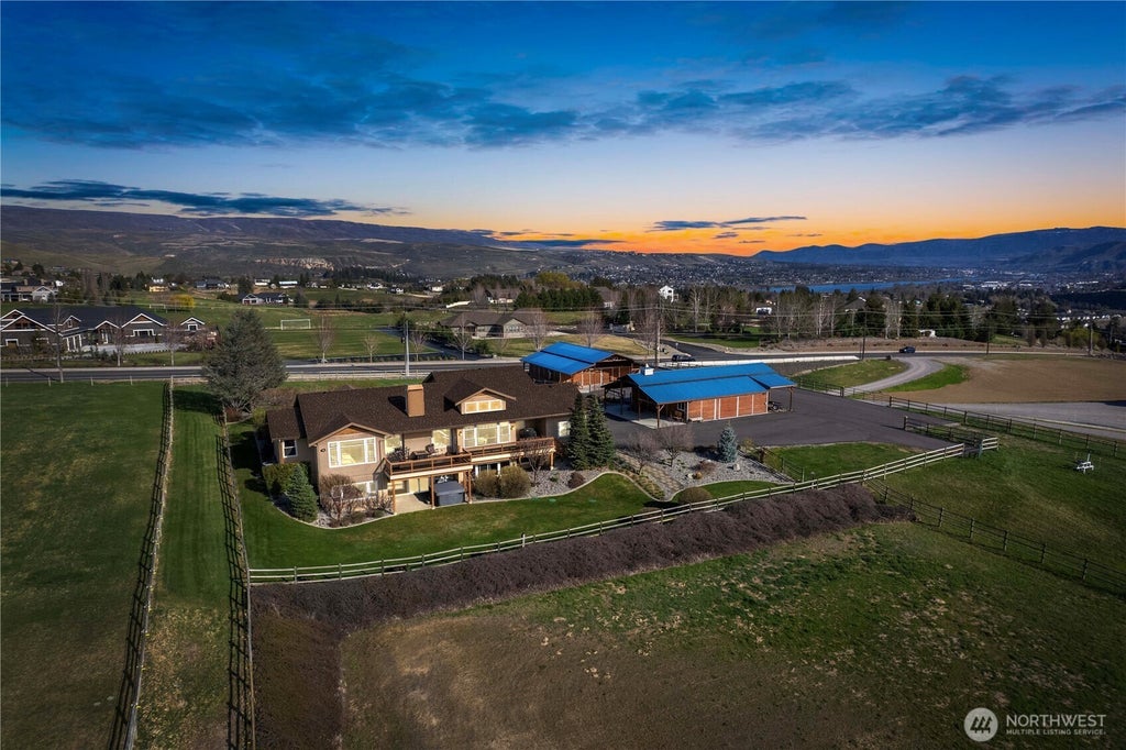 Beautiful Sunnyslope Custom home on 5 acres with sweeping views of the Wenatchee valley, Orchards and Cascade Mountain range. Comfortable 4 bedroom Daylight Rambler that has so much to offer. Open floor plan with river rock fireplace and bright sunny spacious kitchen with views to the Mountains. Primary suite with patio door to the deck. Library/office off the entry and additional main floor bedroom. Downstairs offers two more bedrooms, a second living area, and a large bonus exercise room. Attached Garage has a finished hobby room in 3rd stall. Two Deluxe Outbuildings- features a 5 car shop with HVAC and a second barn/shop with 4 horse stalls and a tack room. A rare blend of privacy, space, and stunning views—just minutes from town!
