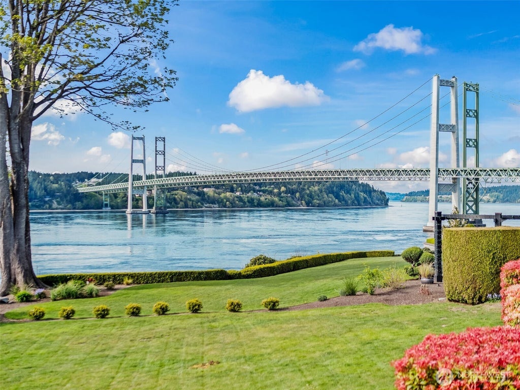 Welcome to this rare legacy property within gated, sought after Narrows Pointe! Sitting on a spectacular private level lot with mature landscaping, this home showcases 125' of western facing 180 degree unobstructed sound views capturing Narrows Passage, the bridge and breathtaking sunsets! Featuring main level living, this 5 bedroom home with office, upper & lower living rooms features an updated kitchen with new refrigerator and dishwasher, refinished hardwoods, 30 year new composite roof, new heat pump w/A/C and tons of storage. Grandfathered into the neighborhood without restrictions here you have flexibility with lasting heritage charm and the opportunity for your creative design. Close to HYW 16, UP Shopping, Chambers Bay and schools.