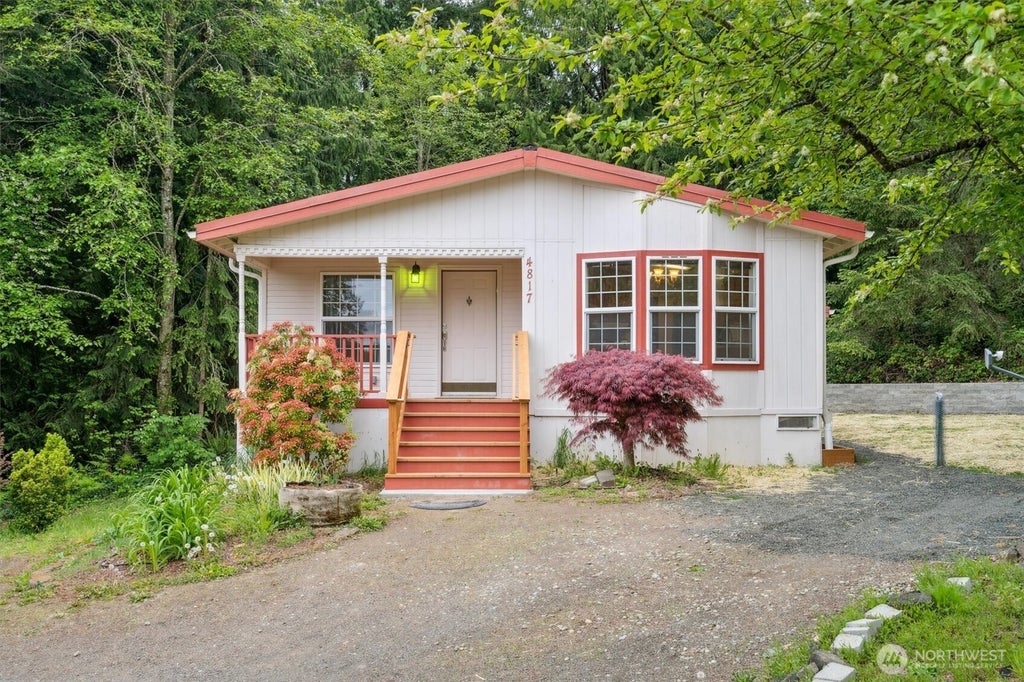 Tucked away on 1.6 serene acres, this one level 3-bedroom home offers the perfect blend of privacy, convenience, and comfort—all under $500K! The kitchen opens to the dining and living areas, creating an inviting space ideal for both daily life and entertaining. Wake up in the spacious primary bedroom to views of your own wooded retreat. Step outside to explore your private trail through the trees, or relax in the large sunny side yard with its brand-new retaining wall and fresh lawn—ready for RV parking, play, or your dream garden. Located just minutes from Silverdale shopping, schools, bases, new hospital and recreation, this home is a rare opportunity for peaceful living close to it all. Come experience it for yourself!