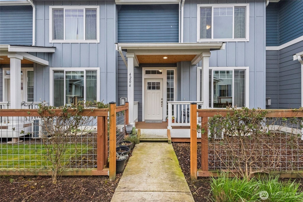 Like new luxury townhome located in the desirable & convenient Aurora Court development. This is the Arris floor plan, entering on the main level, you walk into the open design, w/custom finishes throughout, incl. quartz countertops, engineered hardwood, SS appliances & more. In the living room cozy up to the modern gas fireplace on cool PNW days, or enjoy the cool air from the mini split on those summer days. The primary suite & bedrooms are located upstairs w/ample closet space & storage. The attached 2 car garage is on the private drive side & the front entrance to the home is located off of the private walk way between the row of homes. This master-planned community offers quality living & prime location, close to I-5 & downtown.
