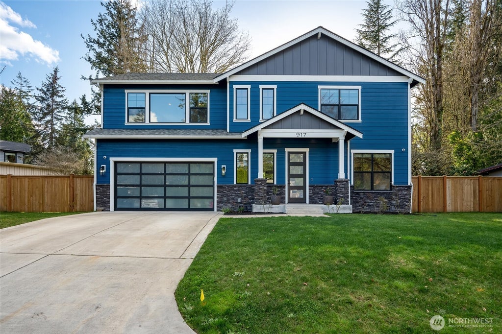 Step into luxury at this custom-built, 5 bed, 4.5 bath, like new showpiece featuring all quartz counters, no carpeting anywhere, main level en-suite, chef's dream kitchen w/ six burner range, dual ovens, butler pantry w/ second sink. Stunning primary w/ fireplace, showpiece tile shower w/ 6 heads, soaker tub & bedroom-sized walk-in closet. Outside, a relaxing 5-person hot tub, plus a covered patio w/ stone fireplace, fenced yard w/ 200sf outbuilding in backyard used as studio/ home gym w/ mini-split. Generator ready + EV charger! Walking distance to parks, all Crossroads area has to offer, easy access to I-90/ 405. Award winning schools & just minutes to Amazon, Microsoft, FB & DT Bellevue. ADU possible? 1yr warranty included! No HOA!