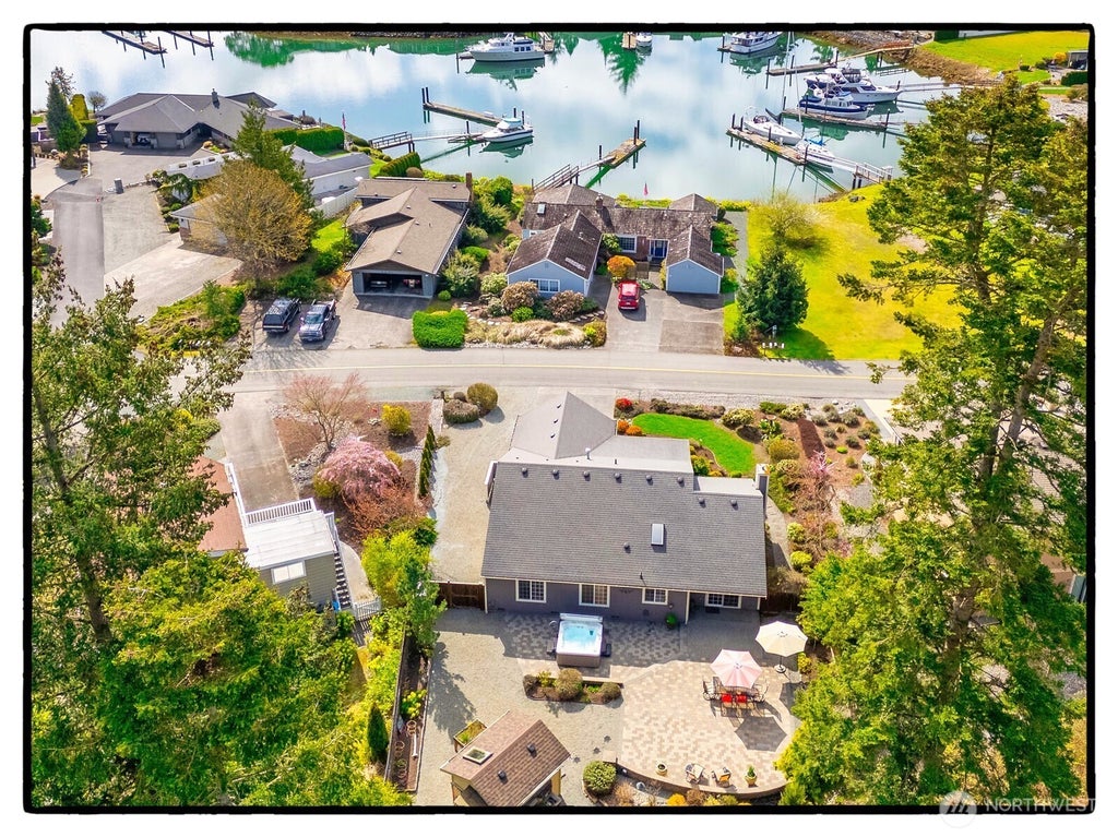 Welcome to this charming single-level home nestled in the beautiful waterfront community of Shelter Bay. This 3-bedroom, 2-bath home features an open concept layout anchored by a cozy gas fireplace creating a warm and inviting atmosphere perfect for relaxing and entertain in the inviting backyard retreat with a spacious paver patio, hot tub and a detached custom outbuilding with flexible space for a home office, workshop, studio, or hobby room. Home features vaulted ceilings, a kitchen island and gas forced air heat. Ideally located within walking distance to a variety of resort-style amenities--Marina, swimming pool, BBQ area, 2 beaches, golf, tennis/pickleball courts and a concrete boat ramp, for your excursions to La Conner and beyond.
