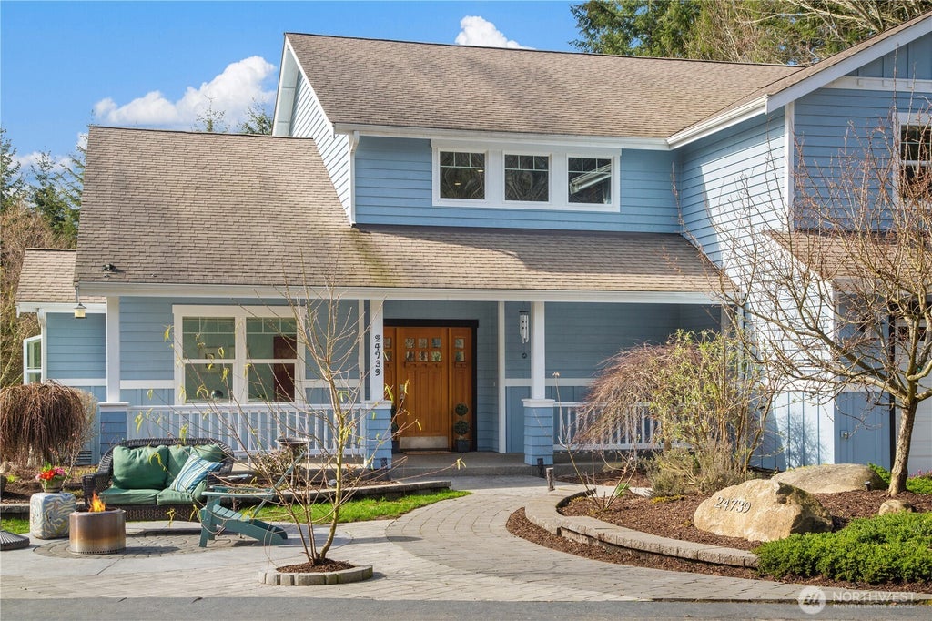 Exceptionally beautiful home with spectacular updates. The gourmet kitchen has a Wolf range, Liebherr refrigerator, new cabinets & sky-blue tile. The primary suite on the main floor is complete with a stunning, remodeled bath with jetted bathtub, chandelier and heated floors. The open floor plan maximizes space and light throughout the home. A second primary suite, two more bedrooms, and a spacious tv/game room are on the upper floor. In addition to the updates, this home features extraordinary outdoor spaces with a huge, refinished deck. In the back yard you will find gardening spaces with cherry, apple & pear trees. It is fully fenced, has RV hookups, high-speed Comcast internet available, and is about 1 mile from the ferry dock.