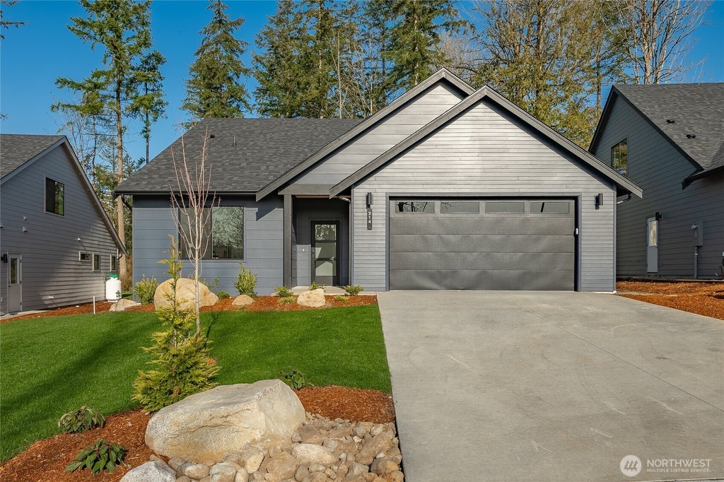 This brand-new, single-level home offers the perfect blend of comfort and style, featuring 3 bedrooms and an open floor plan with high ceilings. With no stairs to navigate, this home is designed for easy living and includes modern finishes such as LVP flooring & sleek quartz countertops. The primary suite offers a private retreat while the living areas are perfect for entertaining. Relax on the covered back patio or enjoy the natural open space behind the home, complete with scenic walking trails throughout the community. The yard has a sprinkler irrigation system. Located in a dog-friendly neighborhood, this home is close to the US/Canada border. *LIMITED-TIME SAVINGS of $5K w/ Seller & .75% Lender Credits with our Preferred Lender.