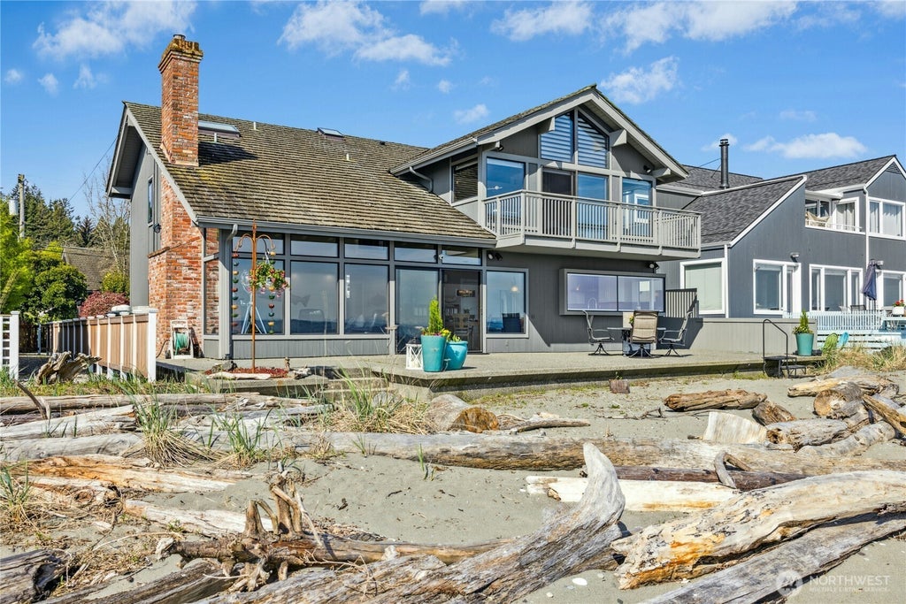 Double Waterfront Footage on Bainbridge Island! Amazing Views of Mt. Rainier, sunrises east over the Cascades, the shipping lanes and sunsets from front of house and dock. A High-end Remodel of entire home in 2018 features an elevator, Viking Professional kitchen, granite counter-tops,& custom cabinetry. Main floor is open w/vaulted ceilings, engineered hardwoods throughout, propane fireplace, bedroom w/3/4 bath and air conditioning. Second floor has Spacious primary Bedroom w/5 piece bath, vaulted ceiling and view deck , an office w/murphy bed and full bath, upstairs laundry and beverage center. A 40'X30' 3 car garage/shop/loft and a greenhouse on the lagoon side w/ garden area dock. house and garage have generator. New windows in 2021