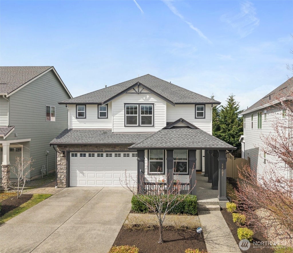Stunning home in the highly sought after Eagle Pointe neighborhood of Snoqualmie Ridge! Featuring 4 bedrooms, 2.75 baths, and a versatile loft, this home offers an open-concept layout w/ hardwood floors & soaring 9' ceilings. The main-floor bedroom has convenient access to nearby shower. You'll love the custom closets, quartz countertops, and fresh updates throughout - including brand new furnace, carpet, paint (inside & out), and extended pavers. Take in mountain views & enjoy easy access to freeways, Jeanne Hansen community park, trails, shops & restaurants plus top-rated Timber Ridge Elementary. A rare find w/ upgrades you have to see in person! With a prime location and stunning finishes, this home is a must see! Pre-Inspected too!