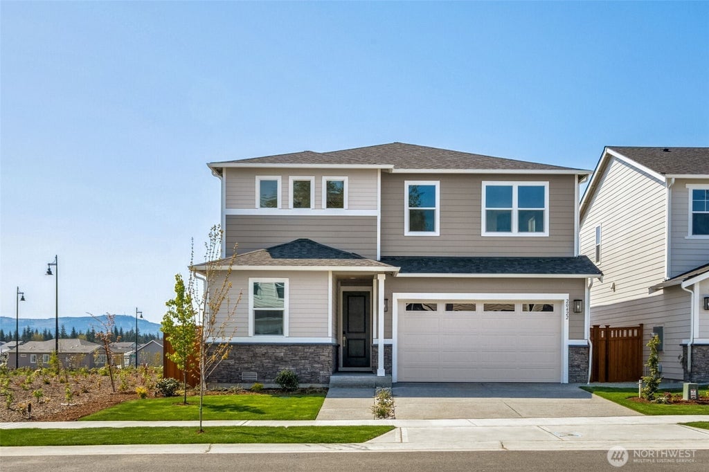 Located in the Sumner Bonney Lake School District. The Pearl plan offers two stories of thoughtful living space. A spacious kitchen provides a panoramic view of the main floor—overlooking an elegant dining room and a large great room. This home will be built with an extra bedroom on the main floor. Upstairs, a lavish primary suite offers a roomy walk-in closet and attached bath. The second floor also includes an airy loft and two additional bedrooms. Designer curated finishes complete this home. ASK ABOUT SPECIAL FINANCING. If you are working with a licensed broker please register your broker on your first visit to the community per our site registration policy.