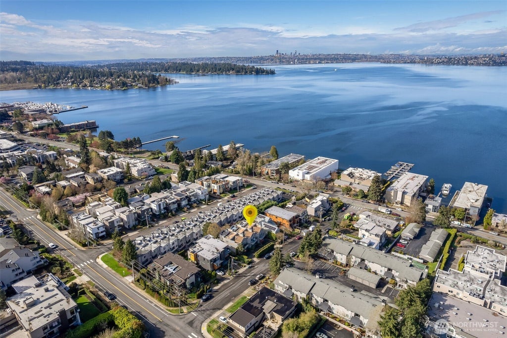 Experience luxury living in the heart of Kirkland, just steps from Lake Washington. This exquisite home boasts breathtaking mountain and water views from nearly every room, with outdoor spaces on every level. The light-filled living area features soaring vaulted ceilings, a cozy fireplace, and walls of windows. A chef’s kitchen offers stainless appliances, bar seating, and a lounge area opening to outdoor bistro seating. The primary suite impresses with a fireplace, jetted jacuzzi tub, walk-in closet, and private balcony leading to a stunning rooftop deck. A fenced backyard provides space for pets or gardening. Enjoy a prime location near top restaurants, shops, and waterfront parks, with an easy commute to downtown Bellevue and Seattle.