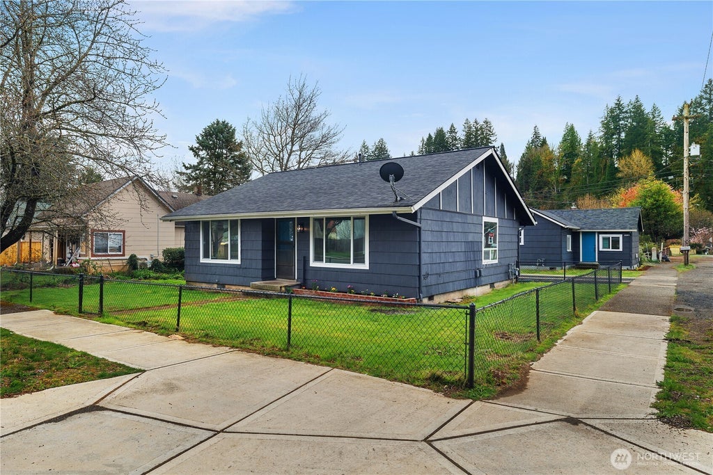 Two downtown Shelton homes on one large corner lot! Both homes have had new roofs, new exterior paint and new windows installed within the last 3 years. The primary home is a 1020sf 2 bedroom home that has been nicely updated, with new LVP flooring, and carpet in the bedrooms. Updated Kitchen cabinets, and appliances, updated bathroom fixtures, and all new paint inside! The ADU has a living room, kitchen, single bedroom and bathroom, with an area for a full sized laundry unit. The main house has a fully fenced yard, and there is a shop building large enough for one car. The location of this home ideal, close to the highway for commutes to Olympia, close to grocery stores, and located right downtown!