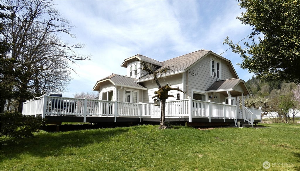 Charming, well-maintained solid built home w/ fantastic outdoor space! New wrap around deck & lighting create an inviting atmosphere perfect for entertaining or relaxing in your outdoor oasis. This 4 bedroom home offers great blend of character & functionality. Kitchen w/ new appliances, eating bar & breakfast nook that has sliding door to exterior. Cozy living room w/ wood burning fireplace next to dining area. Primary bedroom on main floor & 3 add'l rooms +loft/office space upstairs. Detached shop/garage w/ lean to & tons of storage. Large yard on double lot w/ fully fenced dog run area & room to spread out. Located on quiet, dead end street in Concrete close to everything! Many recent upgrades incl new furnace/siding/gutters & more.