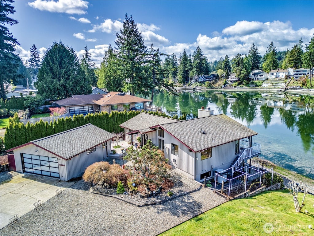 Beautiful west-facing low bank waterfront, spectacular views & quality combine to make this such a special home! The views are gorgeous & ever changing. Watch eagles, blue herons & seals from most rooms. Beautifully updated kitchen, tile & wood flooring & airy vaulted ceilings. 2 very generous bedrooms + flex room (with a closet). Sizable family room in the walk-out lower level, with a wet bar setup ready to go. Putter in raised garden beds, perfectly placed for southern exposure. Captivating sunsets & kayaking from your beach can be your everyday lifestyle!