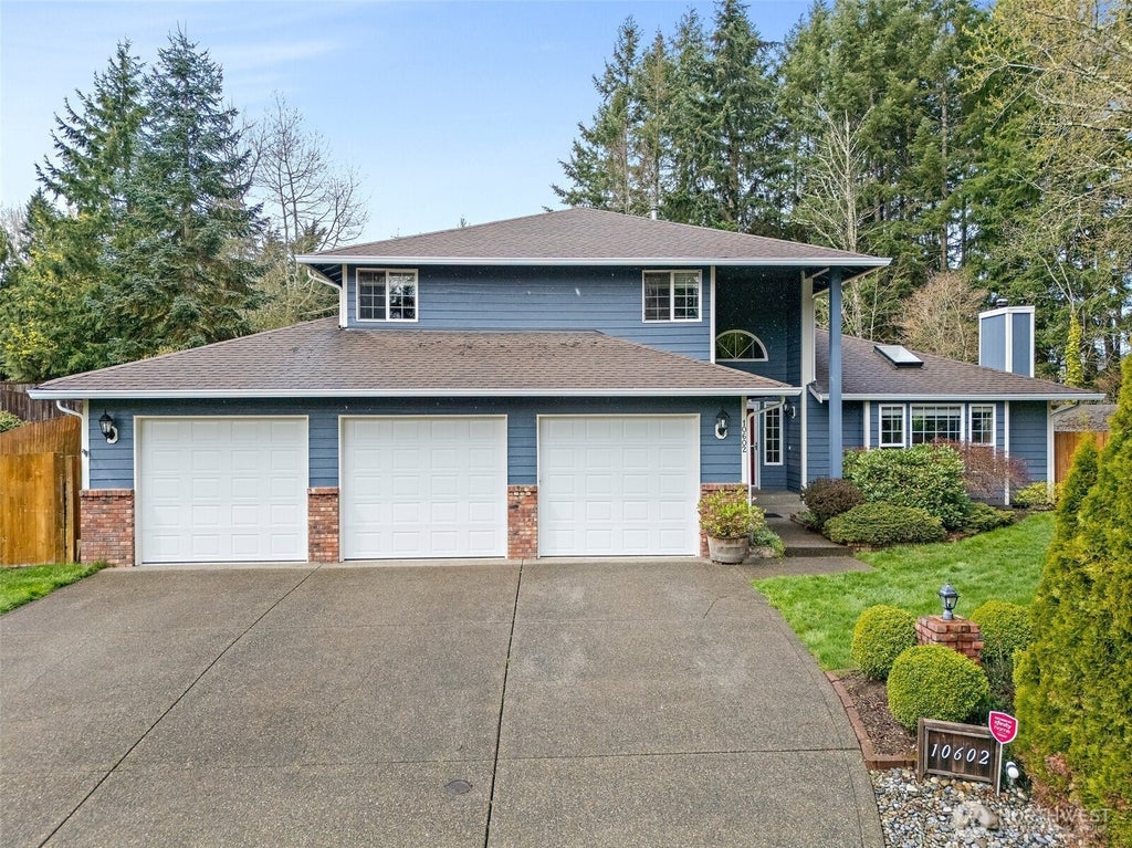 The convenience of being in Bonney Lake with the benefit of the White River Schools. This fantastic layout offers over 2100 sqft of updated amenities and great features. Brand new quartz counters, fresh paint, new carpet, garage doors, exterior paint and more! Main floor offers large and inviting living/dining room and large kitchen. Just a few steps down and you have an HUGE bonus room with backyard access. Upstairs, find three comfortable bedrooms, including a generously sized primary suite with full en-suite bath. Step outside to a fully fenced MASSIVE backyard with a covered patio, firepit, and blooming magnolia tree. With a 3-car garage, heat pump, dead-end and on a cul-de-sac this home is ready to enjoy.