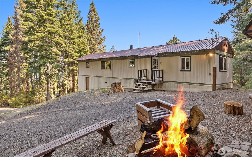 Incredibly well kept & updated, this Sky Meadows cabin is more than meets the eye! Large living space features a warm wood burning stove, tons of seating, & a queen sized futon. Don't miss the wetbar, & the back deck that showcases the VIEWS! The kitchen is clean as a whistle & has custom cabinets, a breakfast bar & a nice dining room. Primary Suite has double closets & a 3/4 bath with tiled shower! (easy to add back 2nd bdrm!) Lots of parking & a circular driveway. There is a workshop, & the covered woodshed is a great shelter to sit & enjoy the fireplace even in the snow! Here's the best part- this property TOUCHES the Meadow-you can snowshoe up or ride your sled to your cabin in less than 1 minute. Enjoy community clubhouse, pool, & more