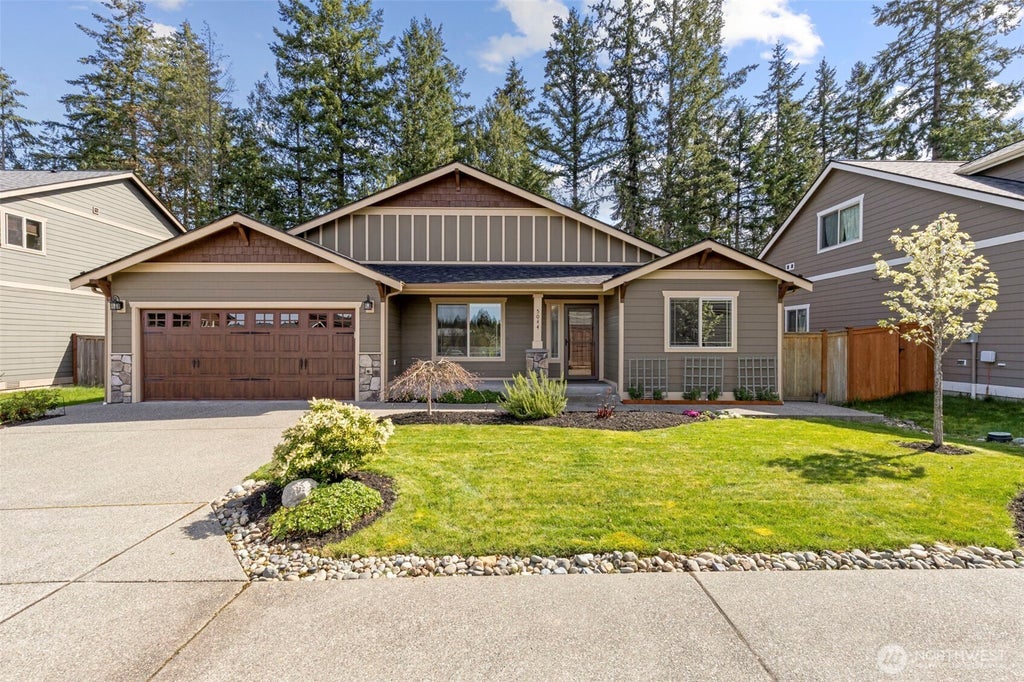 Pristine 3 BR+ Office with impressive 2170 sf single level living & easy care yard. This 5 yr old home has a fantastic layout. Inviting open entry w/ vaulted living room & wide plank flooring. Huge open kitchen w/ quartz counters, SS appliances & spacious pantry is made for cooking, gathering & hosting a crowd. Vaulted great room w/ gas fireplace & skylights. Peaceful Primary suite w/ large custom shower, heated floors, walk-in closet & private water closet. Separate guest wing w/ 2BR. Private yard w/ massive covered patio for year around grilling & enjoyment. Pretty landscaping w/ raised garden beds. Fully fenced w/ sprinklers. Sunny neighborhood loop w/ park, great for walks and jogs. Mins to bases & Silverdale. Award winning CK Schools!