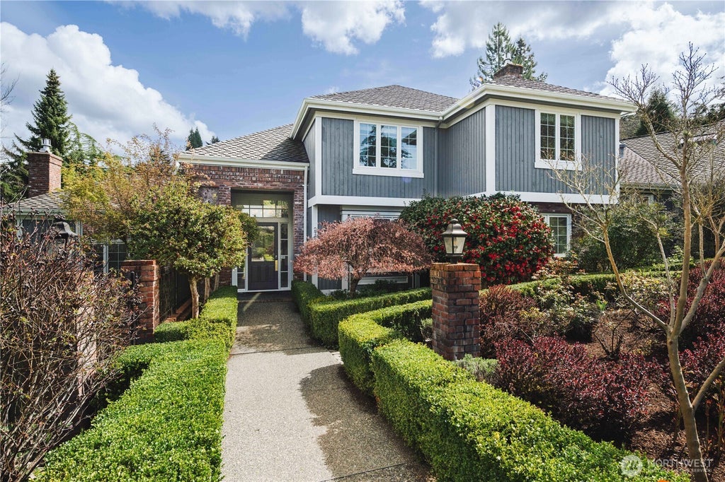 This stunning two-story timeless home sits on an expansive 20,100 SF lot in coveted Clyde Hill. A vibrant classic reimagined with modern elegance, it features rich walnut accents, artistic lighting, and a chef’s kitchen with an oversized walnut and marble island. Vaulted ceilings and large windows fill the living room with natural light and flow seamlessly to a spacious deck—ideal for year-round entertaining. The primary suite boasts vaulted ceilings, a 5-piece bath, and generous space. A private mini primary with its own entrance opens to the Sport Court—perfect for your next three-pointer. Minutes to top schools and downtown Bellevue.