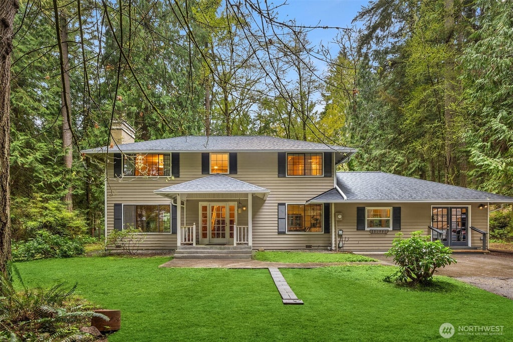 This is the home you have been waiting for! Traditional layout with circular floor plan, oversized family/living room, and three bedrooms on the second floor including one with ensuite bathroom. Large laundry room includes plenty of storage and deep sink. In addition to a powder room, there is a ¾ bathroom on the main floor adjoining a 600 square foot studio with French doors to back yard. The house is sited on a 0.53-acre level lot and is one of five properties that share 3.43 acres of open space, making for great privacy for each home. Less than a mile to 90-acre Battle Point Park and access to an amazing trail system, plus nearby shoreline access off Olympus Beach.