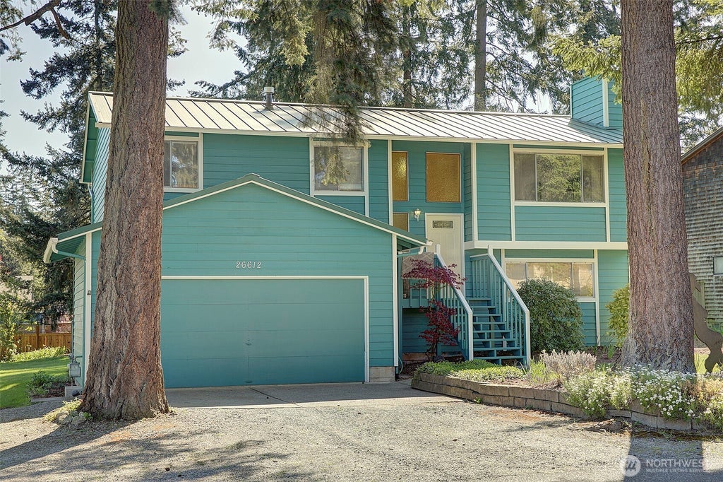 Nestled in a peaceful rural setting just a quick minute from central Covington, this exceptional property offers the perfect blend of tranquility & convenience. The house sits on a shy-1/4 acre parcel & the adjacent 4.32 acre pasture is a 50% shared ownership. The 3-bedroom/3-bath classic split-level offers an open concept living room with fireplace, dining room & kitchen with built-in hi-top. Downstairs, a spacious family room with fireplace & wet bar, laundry & another 3/4 bath. Outside, a 12x12’ detached shop, RV parking area, garden shed/playhouse & a 2-stall barn with fenced pasture land ideal for horses or livestock. Acreage is in flood plain. Barn is equipped with power and household water. Come explore this unique opportunity!
