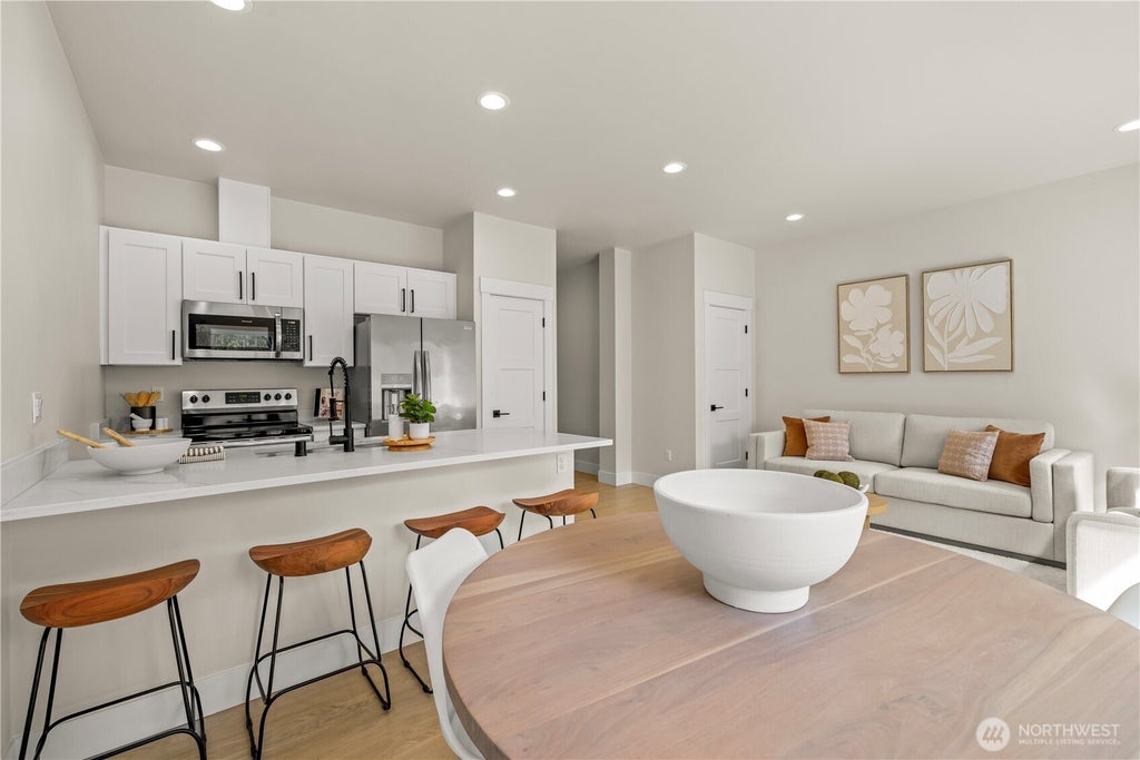 UPDATED PRICE!! Welcome to Alaska Street Condominiums, where modern farmhouse charm meets contemporary convenience. This beautifully designed 3-Bdrm, 2.5-bath home offers an inviting open floor plan, perfect for both entertaining and everyday living. Step inside to find luxury vinyl plank flooring throughout, adding warmth and durability. The stunning quartz countertops and stainless steel appliances in the kitchen create a sleek and functional space for gathering. The spacious primary suite features a ensuite bath, while two additional bedrooms provide ample space for household, guests, or a home office. Large windows fill the home with natural light, enhancing the modern farmhouse design.
