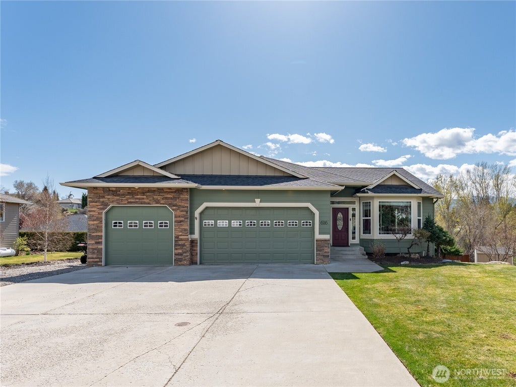 This beautifully appointed daylight home offers bright, airy living spaces. The main floor features an open concept with a spacious living room, vaulted ceilings & luxurious vinyl plank flooring. The chef’s kitchen includes double ovens, a large center island, granite countertops, and scenic views from the dining area. The primary suite, located on the main floor, has an ensuite with a jetted tub, walk-in shower, double vanity, & walk-in closet. A guest room with a full bath is also on this level. The lower level offers two large bedrooms, a huge family/rec room with gas fireplace, and a sizable laundry room with office space. Outside, enjoy a large deck with Cascade Mountain views and a flat, fenced backyard nestled on a quiet cut-de-sac.