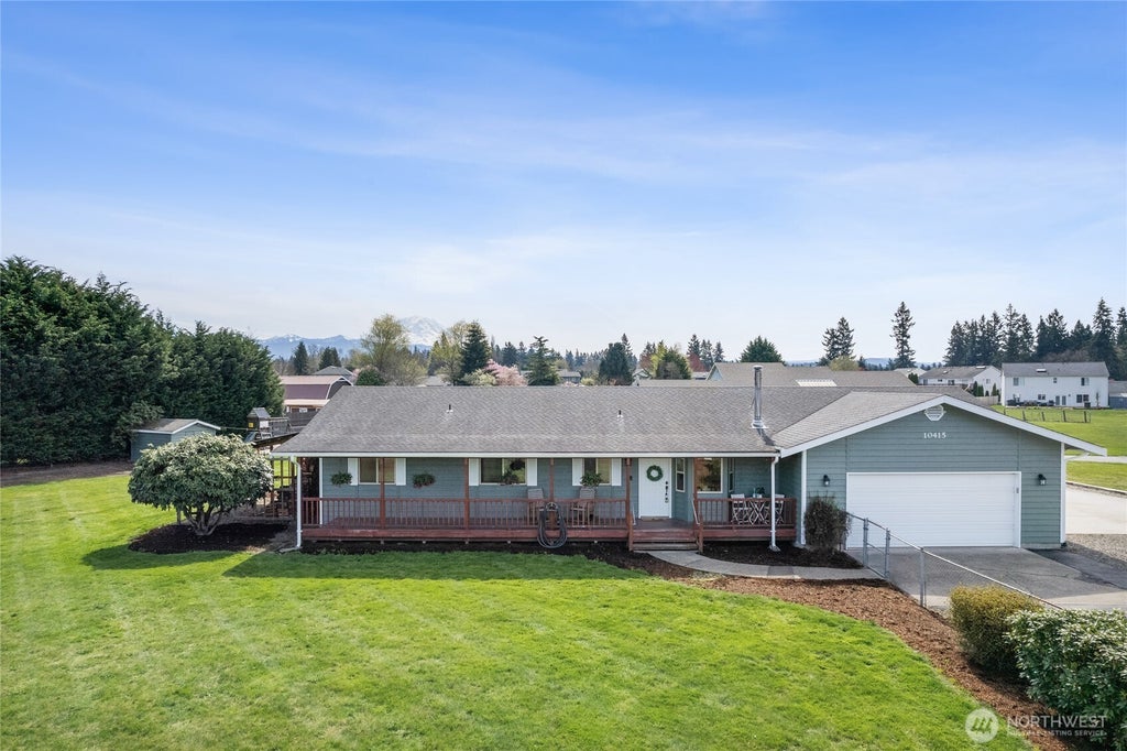 Wake up to views of Mt Rainer in your 3-bed, 2-bath rambler on dreamy ¾ acre lot, fruit trees, and RV parking with full hook ups. Fresh paint inside and out, new carpet and flooring, and new ss appliances. Primary bedroom with large walk-in closet, gorgeously remodeled en-suite. You’ll enjoy this home year round, whether snuggling up to the cozy wood stove or stepping out the new slider to a huge trex deck with built in seating - ready for sunset hangs. Programmable pixel lighting for any season conveys with home. Learn more about the unique history and design of this home, featuring, radiant ceiling heat, 2 new water heaters, AC, 2 car garage with storage and more.