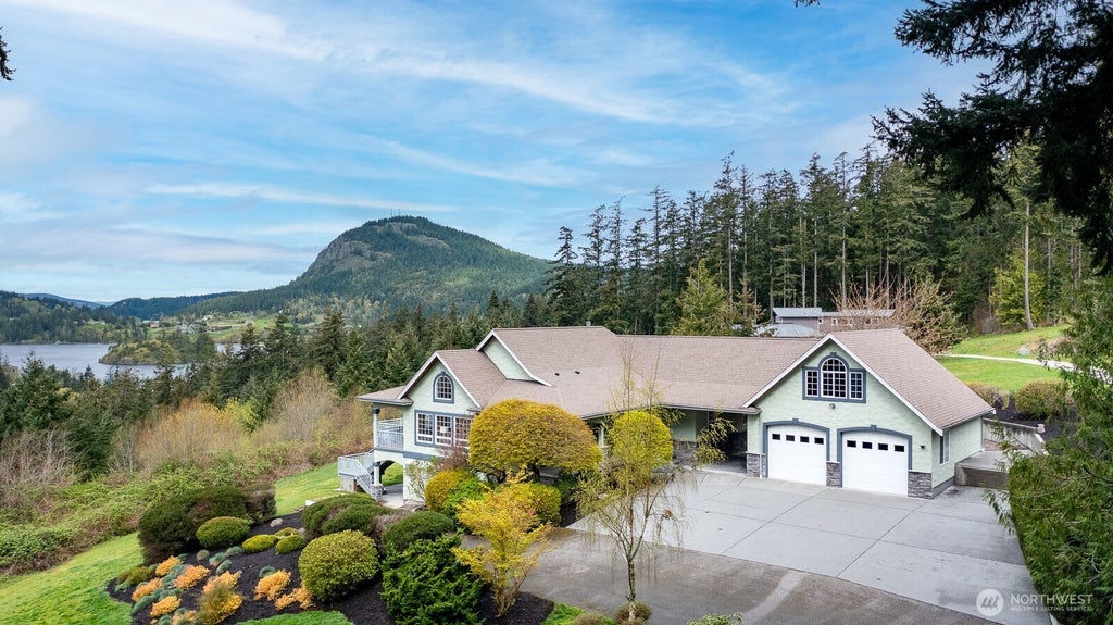 Westerly views over Lake Campbell, Mt. Erie & beyond set the tone for this exceptional 2.5-acre property. Heart of the home is a stunning chef’s kitchen, fully outfitted w/custom cabinetry & premium appliances—seamlessly flowing into living with central fireplace, dining area & out to expansive view deck. Thoughtfully designed for main-level living, the primary suite gives walk-in shower w/patio access—perfect for future spa retreat, 2-addtl bdrms, ¾ bath, office area & large laundry rm complete the main. Downstairs, discover flex living w/rec rm, wet bar or 2nd kitchen, bonus rm, wine cellar, 2nd laundry & ¾ bath—all with its own entrance & covered patio. Oversized 2-car garage w/massive attic sits just off carport plus space for hobbies.