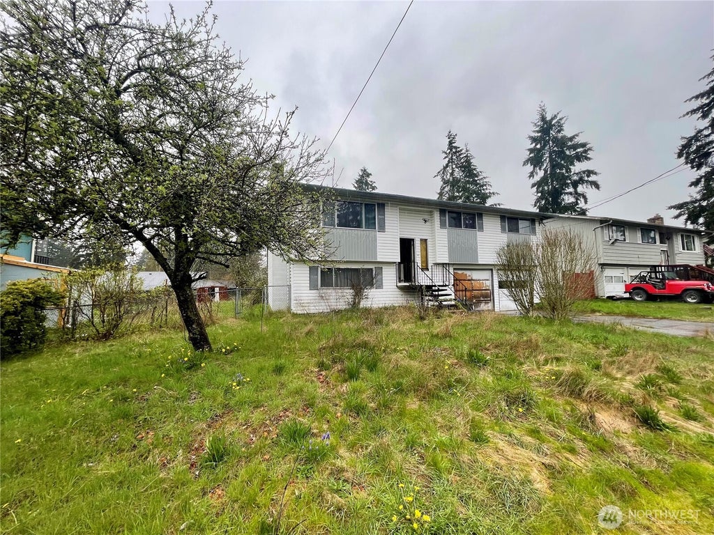 Investor Special! Looking for an addition to your portfolio or a flip? 4 bedroom, 2 bath 1,762 SF home on a 7,500 square foot lot in Bethel School District! Upstairs includes living room with fireplace, dining room, kitchen with access to second story deck, 3 bedrooms and a full bath. Downstairs includes a 3/4 bath with laundry, as well as additional living space with fireplace and fourth bedroom. Double garage houses water heater and electrical panel. Spacious backyard is fully-fenced and includes 2 sheds.