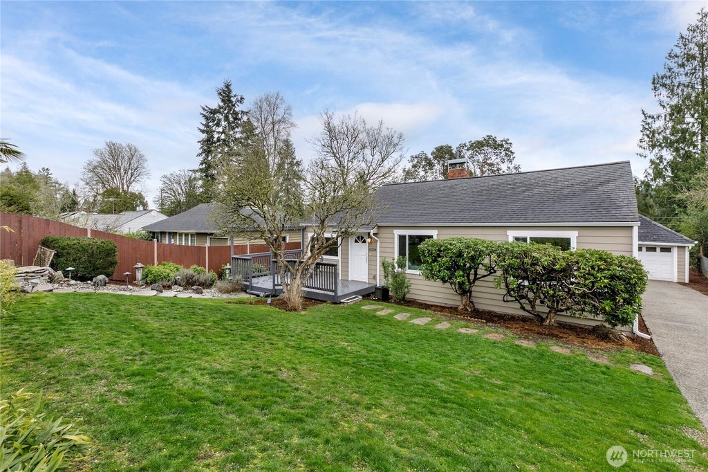Freshly painted and new carpet in this well kept rambler in Shoreline. A great starter home or convert the oversized garage to an ADU for income. A welcoming fountain and designer stone work lead to a cute starter home with two outdoor dining areas and an oversized detached garage with room for your car and a shop. New windows and siding. Lots of upgrades.