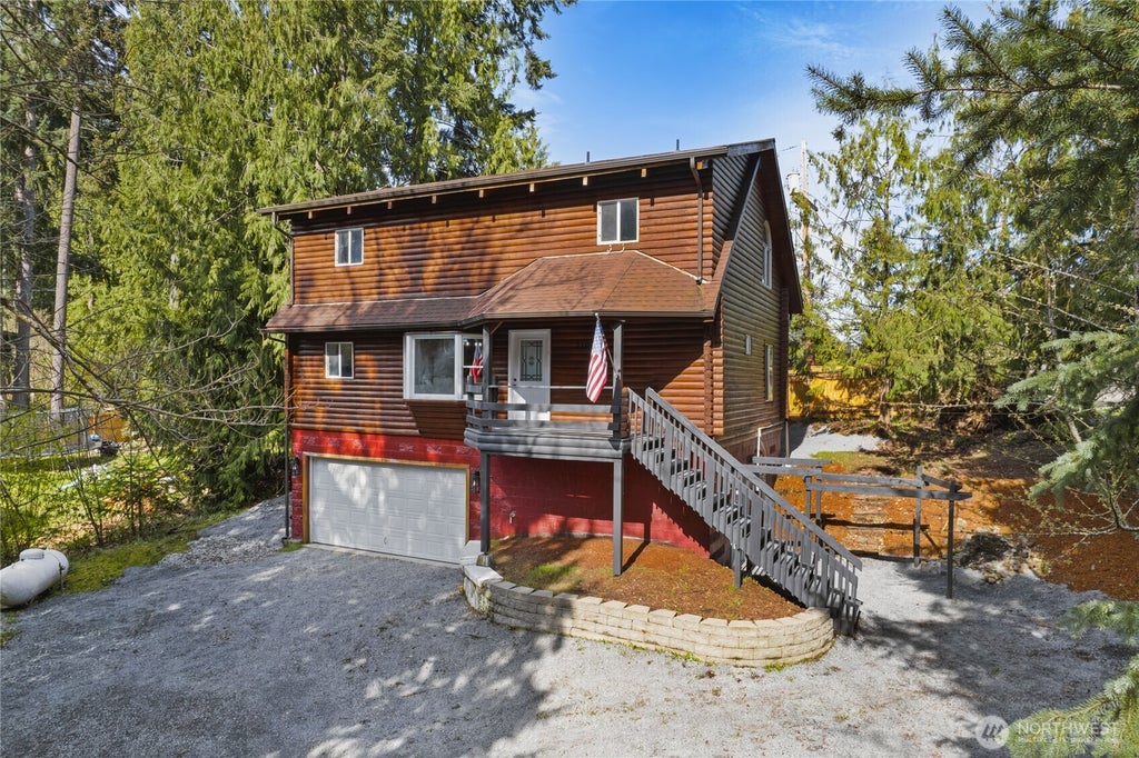 Charming unique log cabin w/ peek-a-boo lake views in the desirable Clearwood community! This spacious home features an open, airy layout with plenty of room to relax and entertain. The upper level offers 3 bedrooms, and a loft, w/ partial views. On the main floor, enjoy a bright & open kitchen w/ SS appliances and quartz countertops, a separate dining room and a cozy living area—all framed by a stunning wall of windows. The fully finished basement has been converted into a large family room with an additional finished room perfect for a home office or guest space. Home features recent upgrades throughout. Enjoy access to incredible community amenities, including 3 lakes, scenic trails, playgrounds, seasonal pool, and tennis courts.