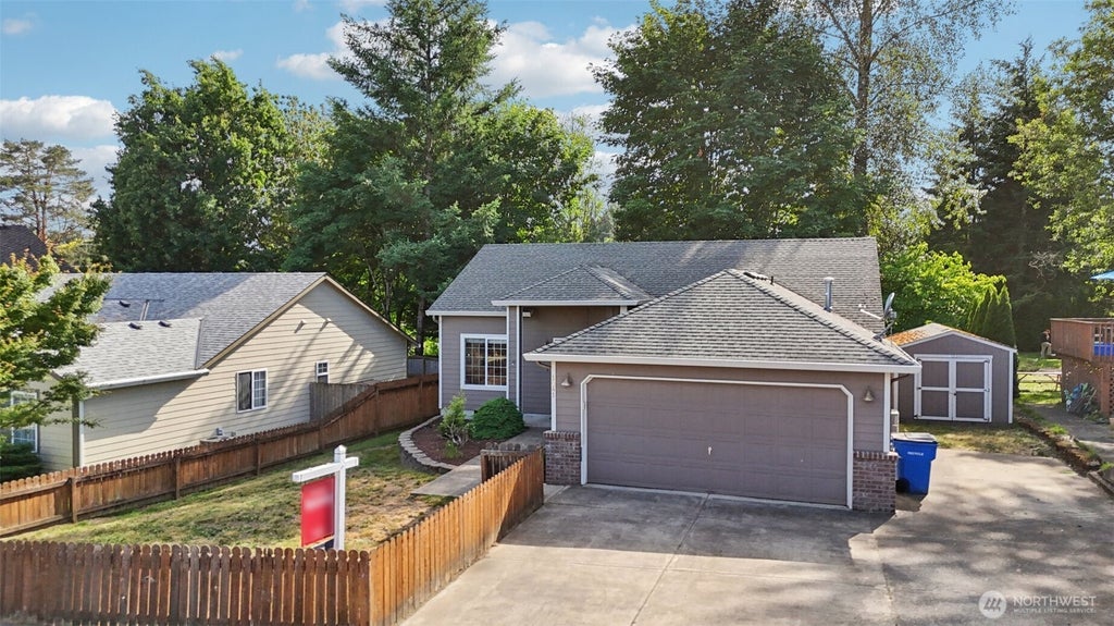 Nestled near the golf course, this charming 3 bed, 2 bath ranch on a .24 acre lot boasts RV & Boat parking and the serenity of a tranquil creek flowing through the spacious Backyard. Imagine relaxing in your park-like backyard and enjoy the tranquil and soothing sounds of nature just steps from your door. There is also a walking bridge across the creek to back of the yard. Inside is a large living room with a gas fireplace and vaulted ceiling that opens to the spacious Kitchen (Pendant Lights-Pantry-Double Sinks) and Dining Room area (Slider to Backyard). Down the hallway is the Primary Bedroom, 2nd Bedroom, 3rd Bedroom, and the Laundry Room (Shelves-Storage). Outside is also a Fully Fenced Front Yard and a large Shed by RV & Boat Parking.