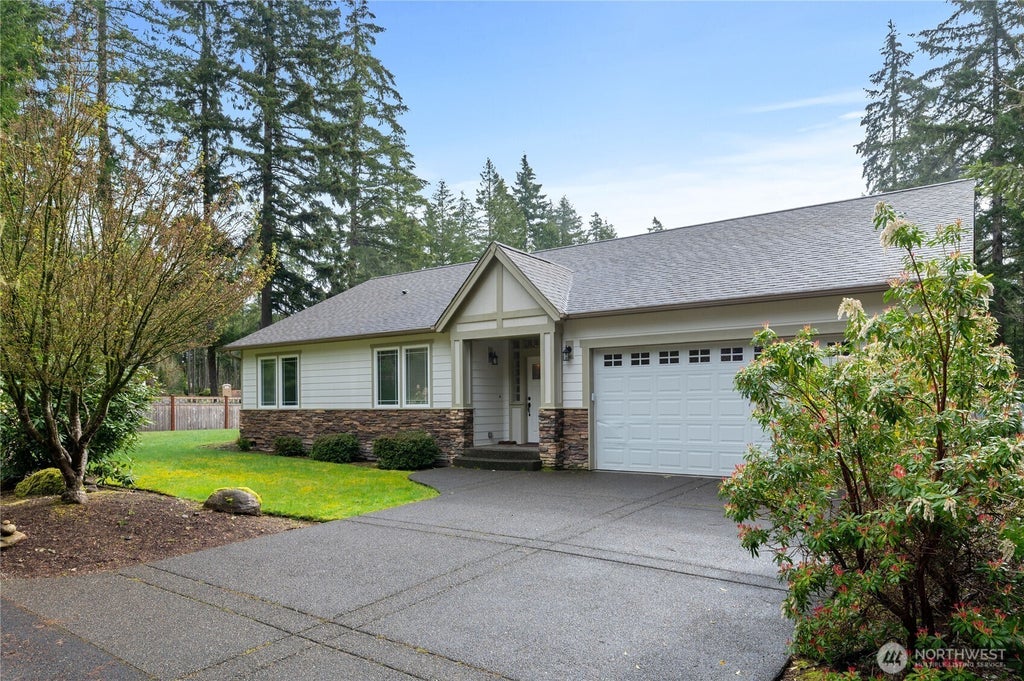 Beautifully updated home with hardwood floors, vaulted ceilings, and abundant natural light. A cozy propane stove warms the inviting living area. The kitchen features granite counters, plenty of storage, and a spacious pantry. The primary suite includes dual closets and a spa-style bath with a walk-in shower and separate walk-in soaking tub. A large den offers flexible space. Detached 10x12 studio with heat, sink, and toilet—great for work or guests. Enjoy a private, landscaped backyard with deck, patio, and sprinkler system. Newer furnace with heat pump and newer water heater. HOA includes member golf with advance tee times, trails, clubhouse, courts, parks & more!