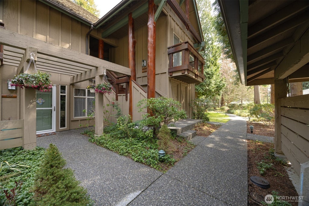 Tucked inside the private gates of St Andrews Green at Semiahmoo, this stylish 2BD/2BA ground floor condo offers 977 sqft of no-steps living. Thoughtfully updated with engineered hardwood floors, modern lighting, wood beams, Gypsum tile accent wall, vaulted ceilings, & large windows for great natural light. The spacious kitchen features stainless appliances & opens to a dining area perfect for hosting. Cozy up by the river rock fireplace or relax on your private front & back patios. Includes newer washer/dryer, fridge, hot water tank, covered parking, & extra storage. Enjoy resort-style amenities: clubhouse, pool, tennis courts, playground, & miles of nearby trails, beaches, & championship golf.