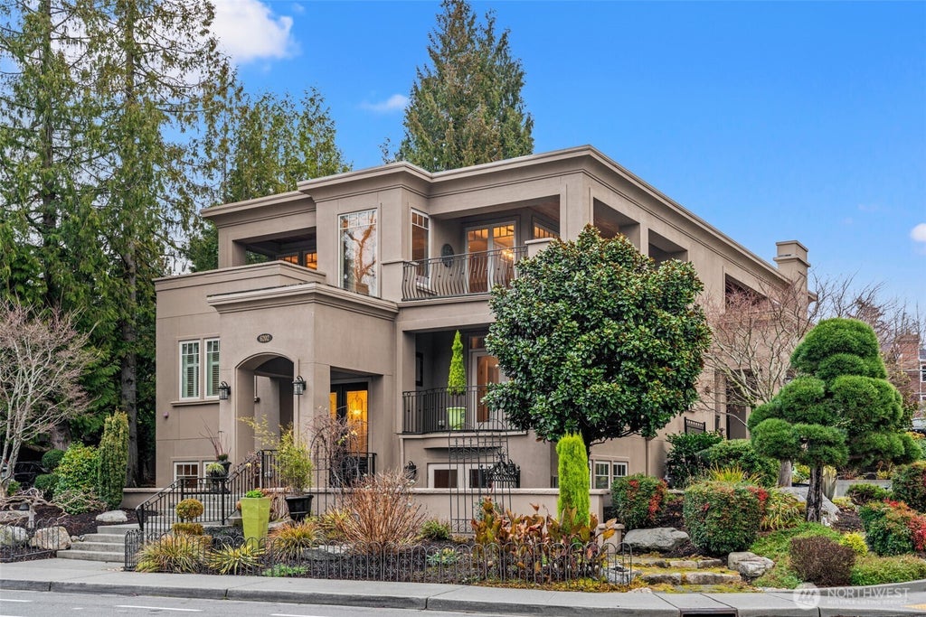 In the heart of Kirkland, a beautiful Tuscan Villa awaits, offering stunning sunset views over Lake Washington & the Olympic Mountains. Entertain guests in the open-concept living & dining areas where you can enjoy two expansive patios overlooking the lake. Luxurious details include a private elevator, beautiful chef's kitchen & 3 ensuite baths.The primary suite showcases a walk-in closet, balcony & 5-piece spa bath. Endless options for the LL bonus room/den styled with French doors & a serene outdoor patio. 1 of 2 total residences with only one shared wall! Private 2 car garage. Ideal access to vibrant Downtown Kirkland's shopping, dining & waterfront activities! Close access to I-405, Google's Campuses, 520 bridge & Downtown Bellevue.