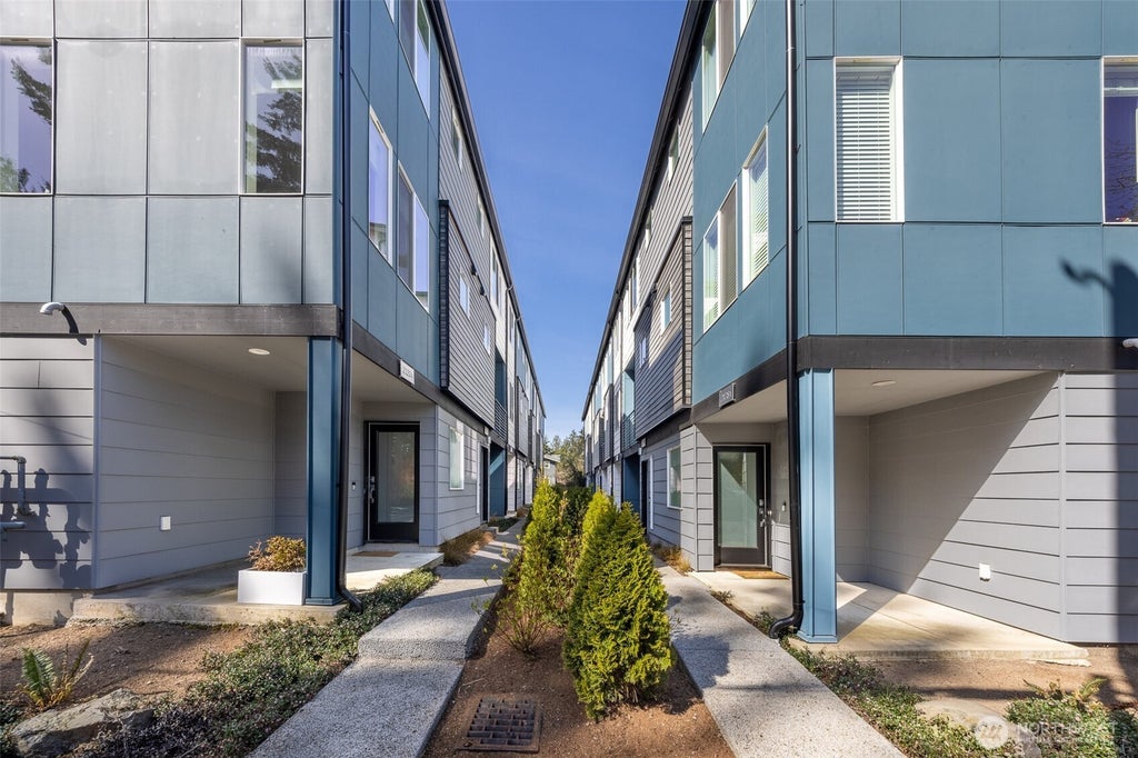 Spacious townhome w/designer touches in Shoreline’s Echo Lake neighborhood. The combination of 1577 sqft + an open floor plan & oversized windows creates a bright, airy living space on all floors. 3 bedrooms, 2.25 bathrooms + 2-car garage! Main floor offers spacious kitchen w/island and plenty of counter/cabinet space, designated dining area & open living room + balcony. En suite primary & additional bedroom/bath on 3 floor. Private 3rd bedroom on upper floor that is large enough to be used as a flex space if owner chooses- media room, gym or office. A/C + tankless hot water heater. Quiet unit with easy access to DT Sea via E-Line/Metro, I-5, & Hwy 99. + close to Costco, Fred Meyer, and retail. This unit has it all!