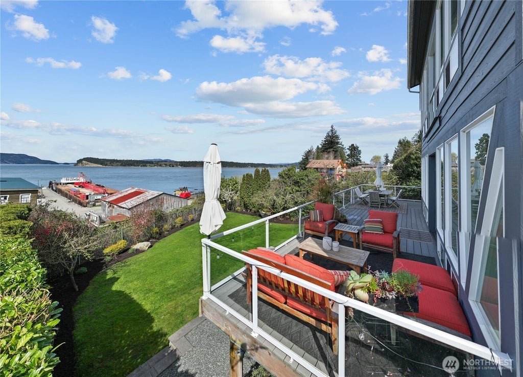 Stunning, floor-to-ceiling water views of the Guemes Channel from each room of this light-filled, mid-century modern home. Three levels of thoughtfully designed living space, this light & bright home is perfect for all who appreciate the historic waterfront. Custom kitchen with large island, ideal for entertaining. Primary suite with intimate sitting room & dreamy views. A double-sided fireplace warms the primary bedroom & ensuite bathroom, with deep soaking tub & walk-in shower. Enjoy the privacy of a fenced backyard, offering relaxation & outdoor living. Solar panels, new furnace & water heater create unparalleled energy efficiency. Whether you’re watching boats glide by or enjoying the gentle sounds of the water, you'll love this home!