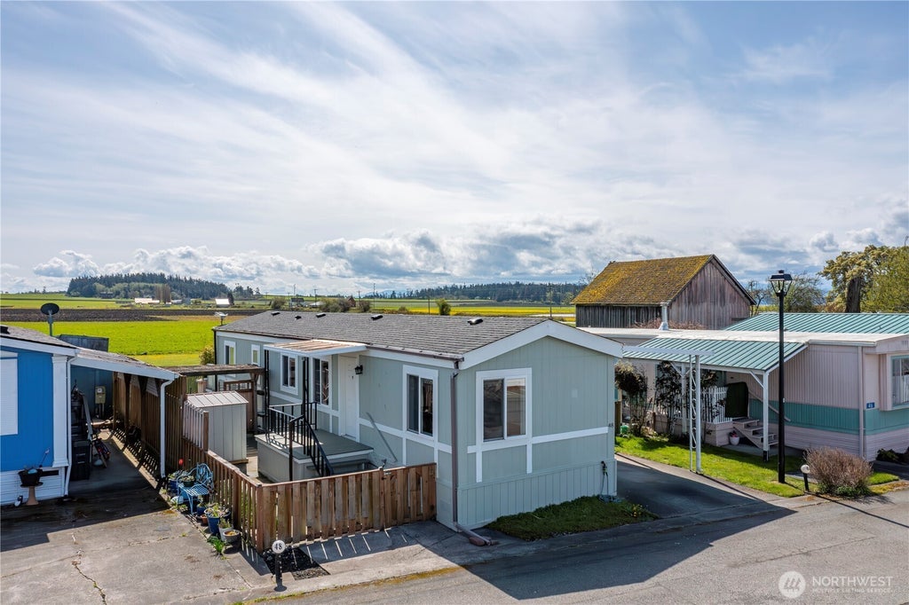 Darling, well-maintained mobile home in an exceptional location! Located in the town of Coupeville near the ocean, state parks, restaurants, hospital, grocery store & waterfront shops. Situated on the edge of the coveted Olympic View Park 55+ community, with panoramic prairie views from your bedroom! Well-maintained home with lots of custom touches including built-ins & shelves. Vaulted ceiling in the main living area & kitchen. Skylight above sink & island. Double-pane vinyl windows. Sliding door from primary bedroom opens to deck with amazing views of mountains & prairie. Buyer must be approved by park. Monthly site lease includes sewer, water & garbage. Dont miss the community clubhouse & dog walking paths.