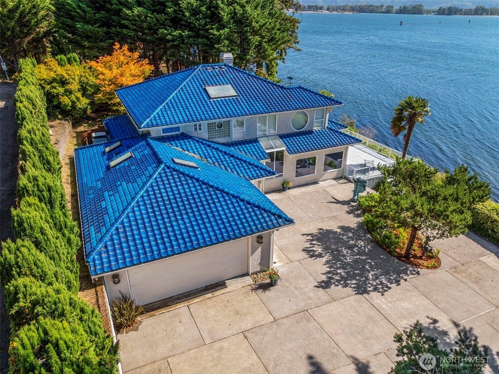 Landmark Columbia River Waterfront home w/258' low/medium bank waterfront. Gated, secluded, walled compound w/AMAZING river views. Open floorplan w/lots of natural light. Steam room and jacuzzi tub in large upper primary. Main floor primary w/three quarter bath. Granite countertops, tile & slate floors. EZ care landscape w/irrigation system, no mower required. Well/septic mean no water or sewer bills. Detached shop/boat shed and its own private boat ramp plus an RV pad. Watch the ships cruise by from expansive deck; windsurf, drop a line & fish, kayak or launch your watercraft without leaving the compound. Stargazing, ship watching & killer sunsets await! Don't miss this opportunity to call the INFAMOUS "blue tile roof" home your very own!