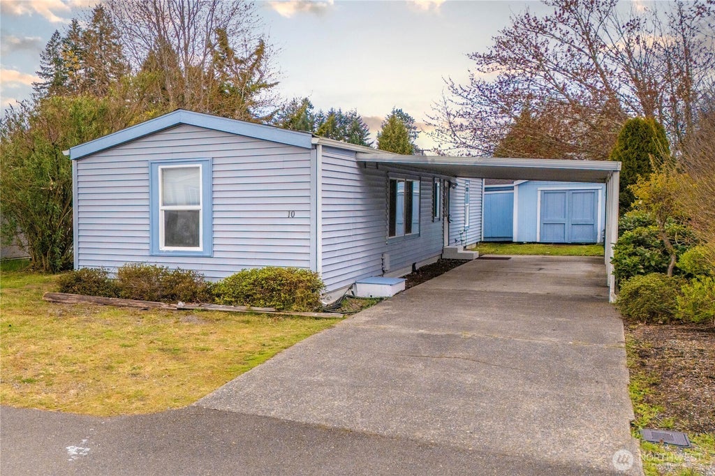 Move-in ready 2-bed, 2-bath home in Crestwood MHP, an all-ages community! This 924 SF single-wide features an open concept split floorplan w/updated laminate floors, new carpet, new lighting, fresh interior paint & new trim. Bright eat-in kitchen w/skylight, SS appliances & a new fridge flows into the living area, perfect for gatherings. Spacious Primary Ste offers a large closet and updated bath. Second bedroom, just steps from its own full bath. Enjoy a fenced, landscaped yard, 2 storage sheds, covered parking, and double-paned vinyl windows. Front-load washer/dryer incl! Conveniently located near Rainier Vista Park, restaurants, schools, medical & Yelm Hwy. Home sold "as-is". Buyers must qualify for residency prior to submitting offer.