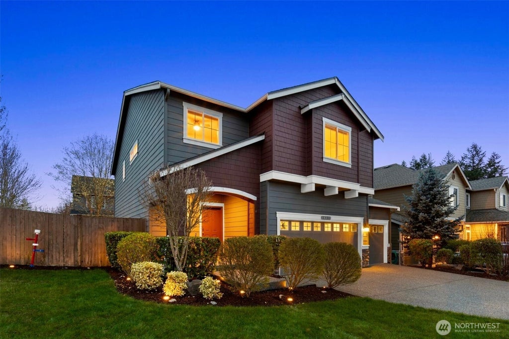 Nestled in the desirable community of The Ridge, this impeccably maintained home blends timeless sophistication with everyday comfort. Refined finishes include granite slab countertops, modern tilework, and wide-plank luxury vinyl flooring throughout. With 2,310 sqft of light-filled living space, the main level features soaring ceilings, open living and dining areas, and a cozy fireplace. Upstairs offers an elegant primary suite with a spa-like bath, three spacious bedrooms, a great room, and custom-built closets throughout. Highlights include AC, front and rear patios, updated paint and flooring, solar panels, generator, sprinkler system, three-car garage, and lush landscaping. Pre-inspected. Minutes to Lake Tapps and top-rated schools.